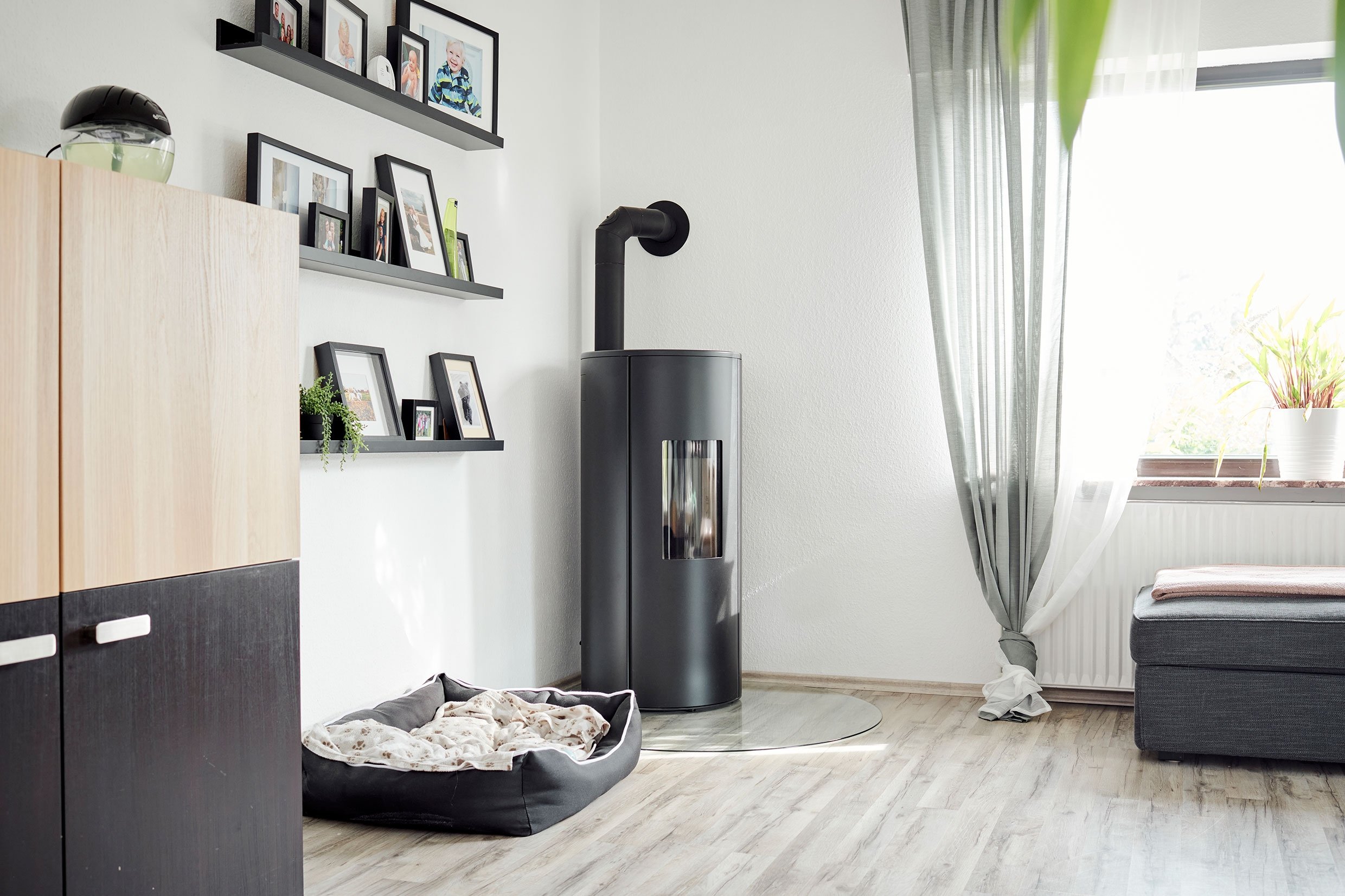 Gemütliche Pelletkaminofen-Ecke im Wohnzimmer