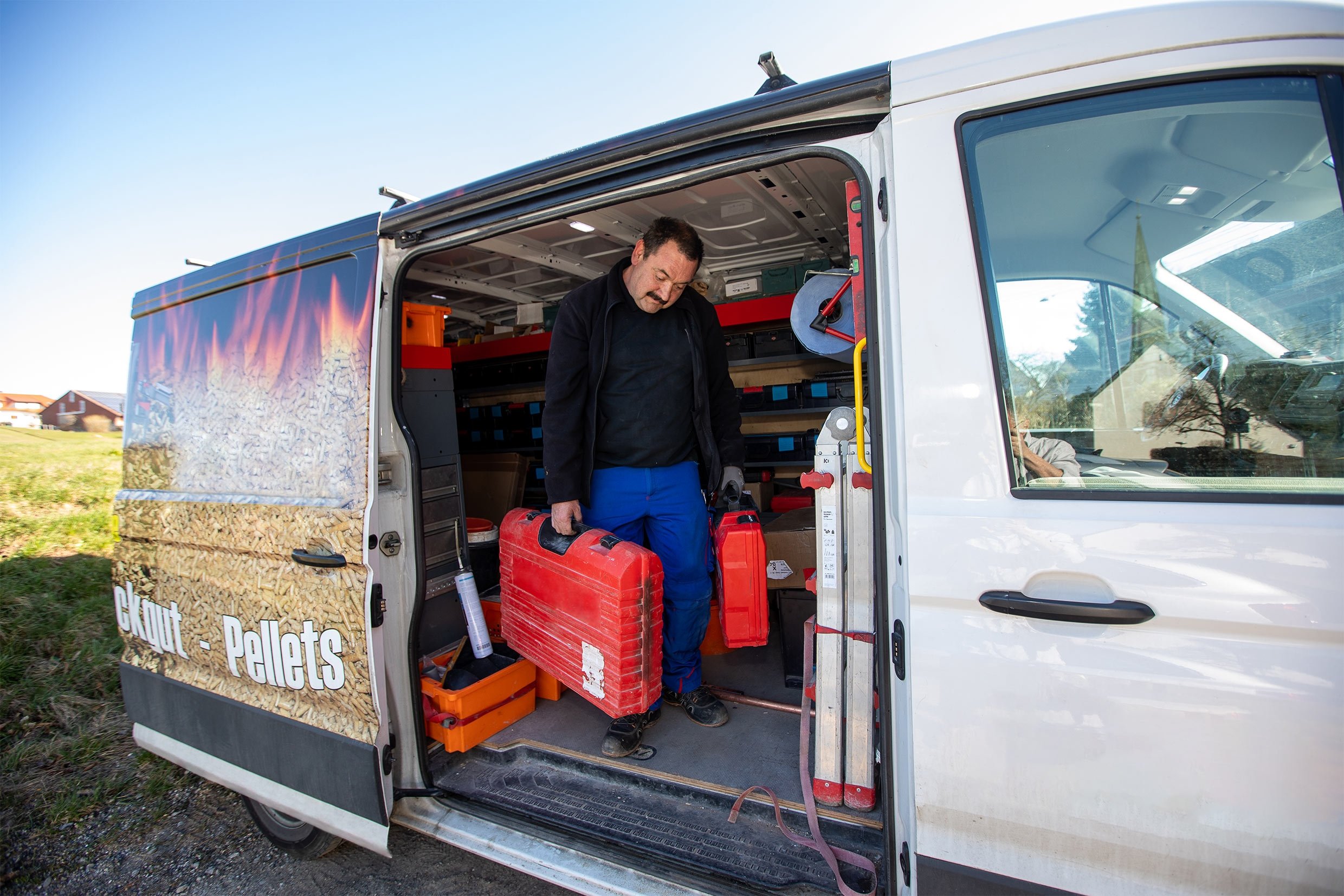 Heizungsbauer am Fahrzeug