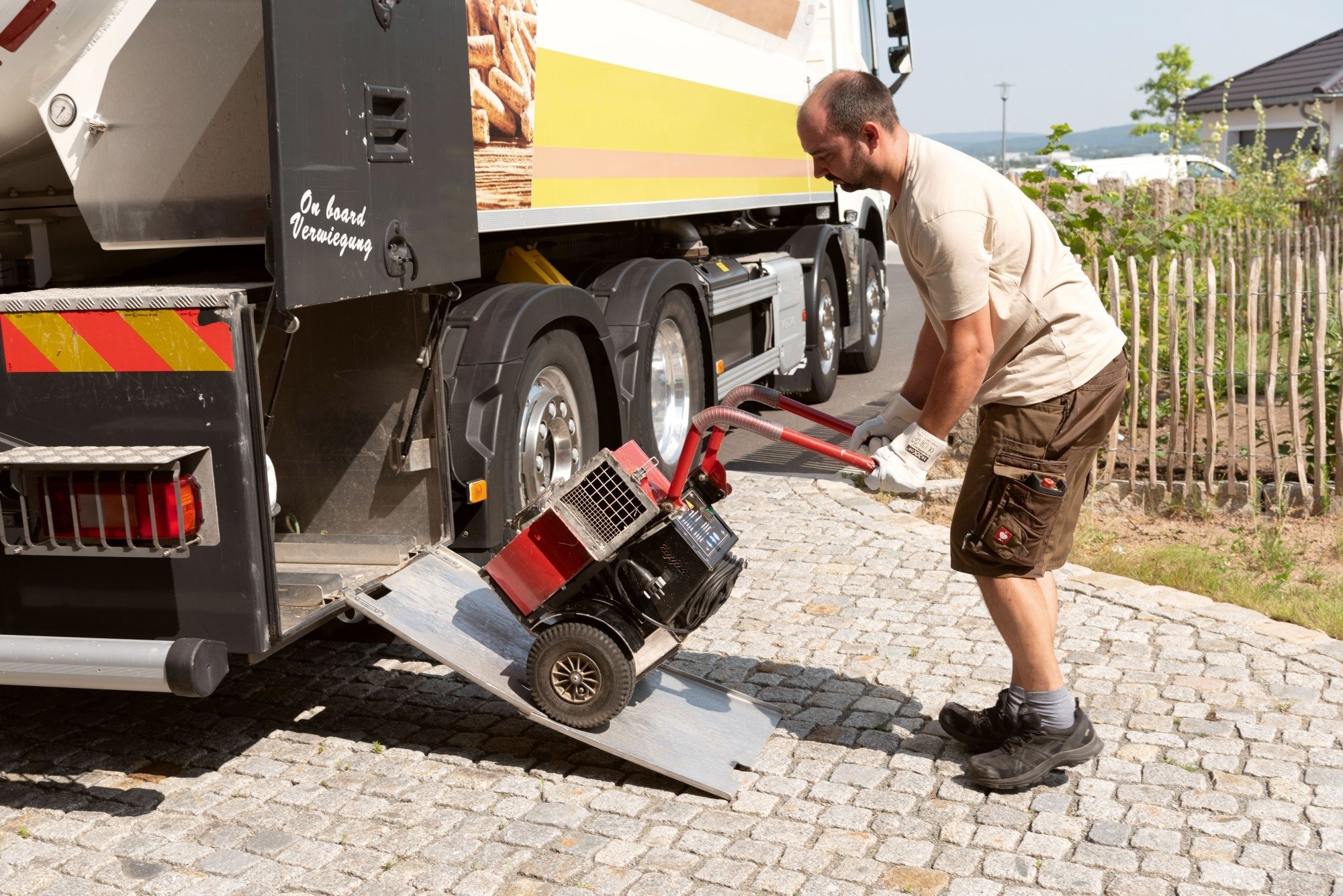 Pelletlieferant entlädt Absauggebläse