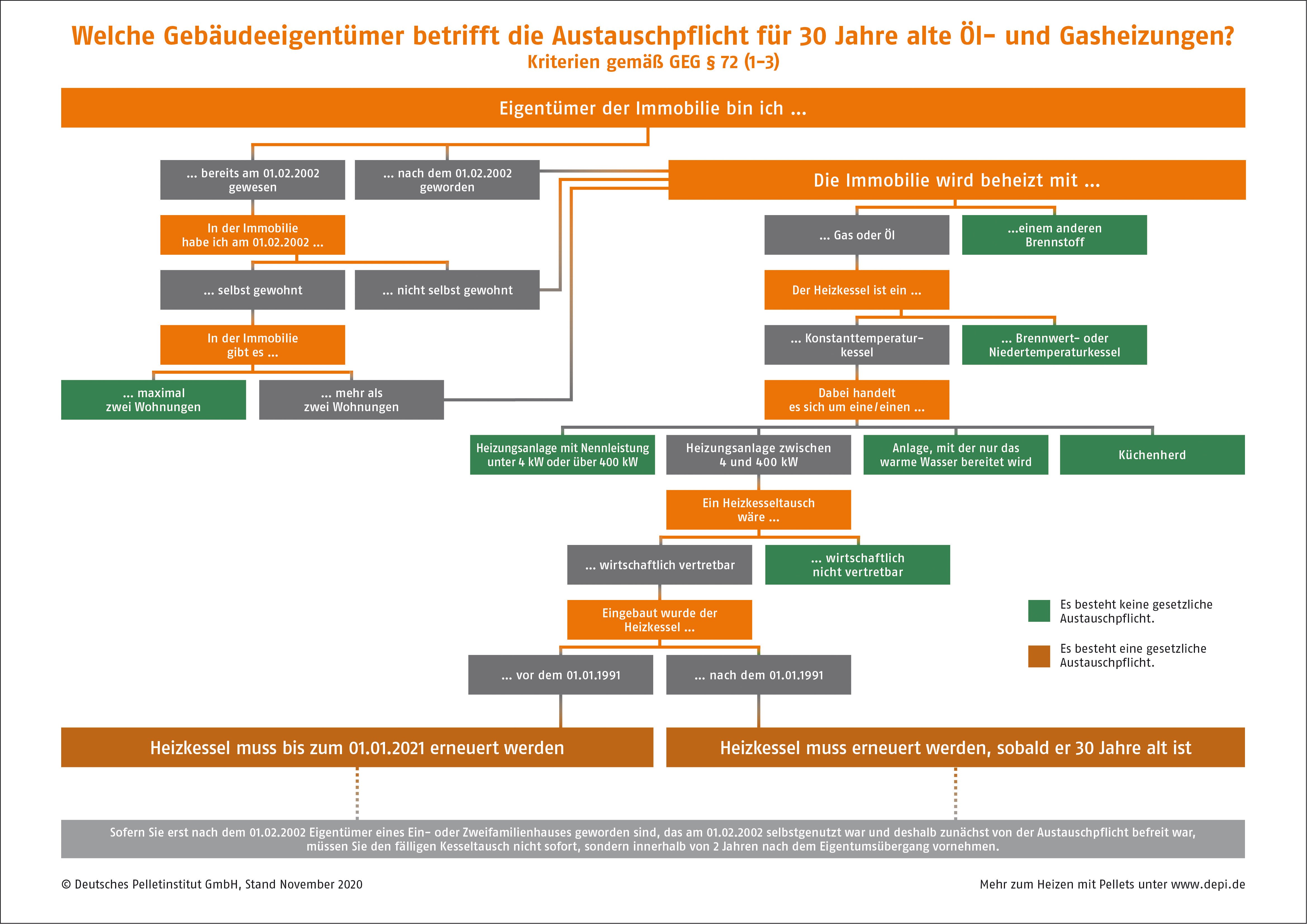 Ausnahmen: Bereits seit langem ausgenommen von diesem Betriebsverbot sind Eigentümer von Ein- und Zweifamilienhäusern, die ihr Haus am 1. Februar 2002 selbst bewohnt haben, sofern das Gebäude höchsten zwei Wohnungen hat. Diese Gebäude entgehen mittelfristig trotzdem nicht der Austauschpflicht: Nach einem Verkauf oder einer Vererbung greift das Betriebsverbot auch bei ursprünglich ausgenommenen Gebäuden. Es gilt dabei eine Übergangsfrist von zwei Jahren, innerhalb derer der Austausch vorgenommen werden muss.